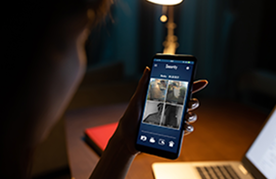 夜間や外出中も異常通知をスマホで受け取り、部屋の様⼦をカメラで確認することができます。